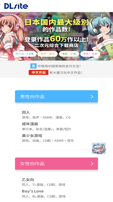 84%DLsite是一个同人志・同人游戏・同人声音・立体声音作品的下载商城平台可以马上下载并且享受喜欢的乙女向和BL同人游戏、广播剧!每天都有新的作品上线,一定有您想要寻找的作品!