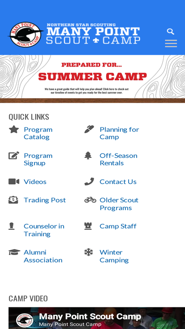 85%Many Point Scout Camp is located on the White Earth Reservation, specifically in the center of the triangle formed between Bemidji, MN, Park Rapids, MN, and Detroit Lakes, MN. Surrounded by wildlife refuges, wildlife management areas, state parks, and state forests, you can be sure that Many Point has a strong wilderness character. Travel Times 4 hours from Minneapolis/St. Paul, MN 4 Hours from Duluth, MN 2 hours from Fargo, ND and Grand Forks, ND 5 hours from Sioux Falls,...