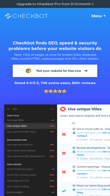 92%Answers to common questions about Checkbot for Chrome. You should check if your question is answered here first before contacting support.