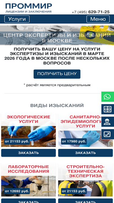 93%Услуги экспертизы, инженерных изысканий для строительства и реконструкции, сицензирование и сертификация в Москве. Гарантия точности. Оперативно и профессионально. Широкий комплекс услуг по ценам от 12533 руб. Звоните 8 495 629-71-25!