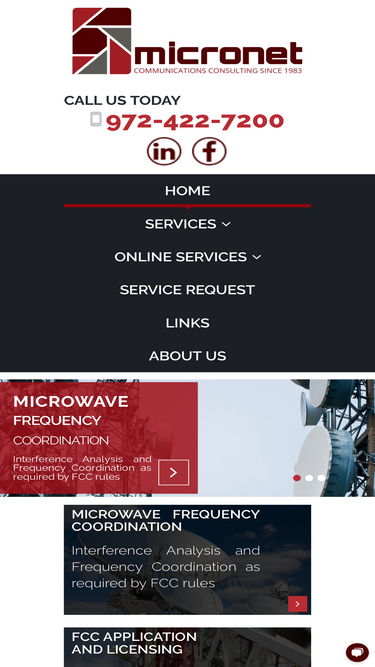 99%For over 30 years, Micronet has provided consulting services to a broad constituency of clients in the wireless microwave industry in every frequency band from 900 MHz to 90 GHz. Our expertise in interference analysis, frequency coordination and FCC licensing for wireless microwave, broadcast auxiliary and satellite communications clients is unmatched. No other company – large or small – is able to offer the same depth and breadth of technical understanding while providing personalized customer service and attention to detail. Micronet constantly strives to provide high quality, competitively priced telecommunications planning and regulatory support services to licensees nationwide. Our mission is to continue this focus, while adapting to new technologies and services as they enter the marketplace.