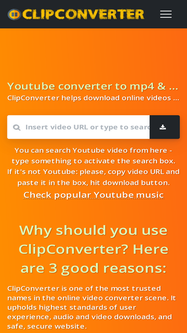 76%this is new clipconverter, under new management, no ads or popups. online video converter. download youtube to mp3 & mp4.