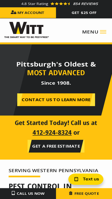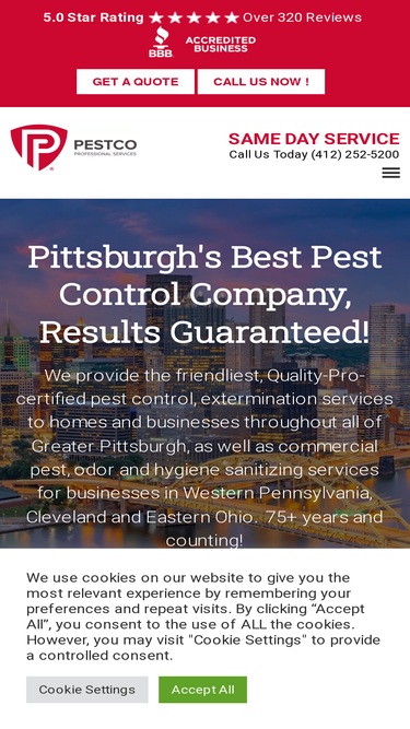 85%looking for same-day pest control services in pittsburgh? we offer high-quality same day pest services and have 100 years of experience to help you take back your home!