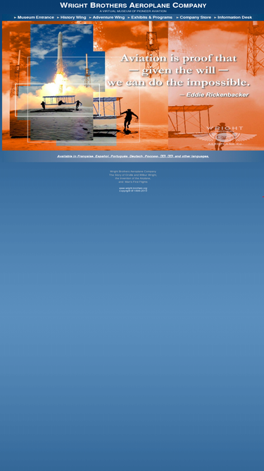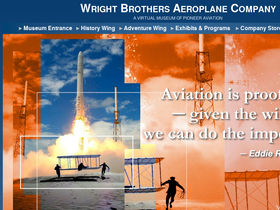 88%home page for the wright brothers aeroplane company, a virtual museum of pioneer aviation, the invention of the airplane, and man's first flights. sponsored by the first to fly foundation, inc.