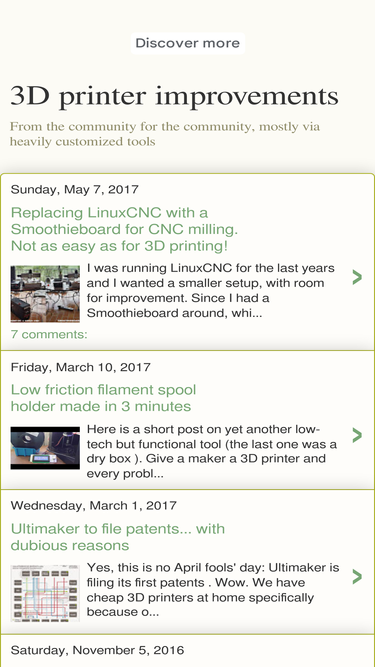 87%An independent blog about 3D printing, 3D printers and FDM technologies. Sometimes very readable, sometimes very technical.