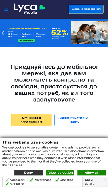 92%Замовляйте картку від LycaMobile безкоштовно, та не забудьте забрати її в найближчому відділенні Укрпошти