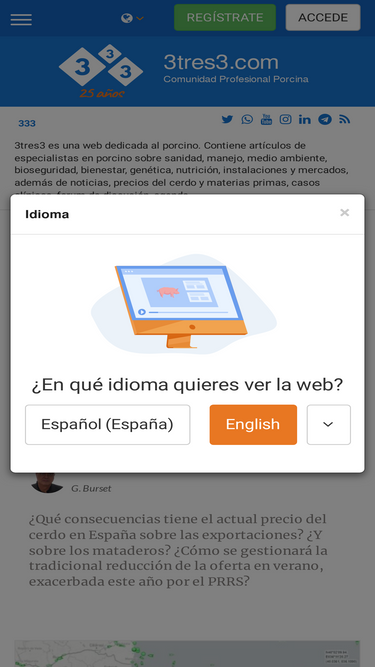 3tres3 es una página dedicada al porcino. incluye noticias, opiniones de expertos, casos clínicos, precios, forum, agenda, simuladores, artículos...