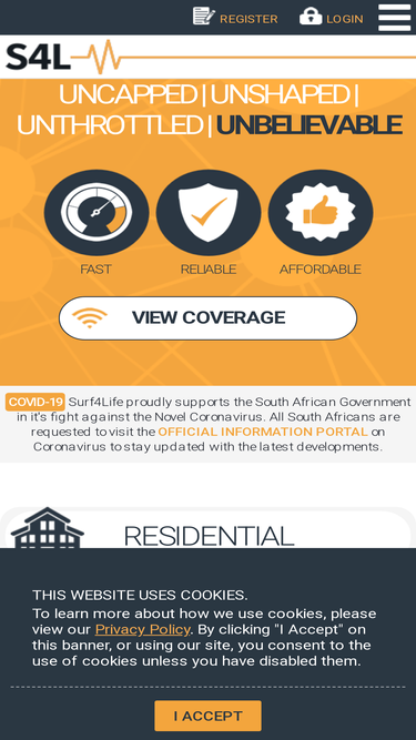 100%interested in connecting to the internet via reliable high speed fibre connections that are uncapped, unshaped and unthrottled? surf4life is a dynamic, growing internet service provider (isp) that offers great value 10, 20, 50 and 100mbs internet packages across south africa.