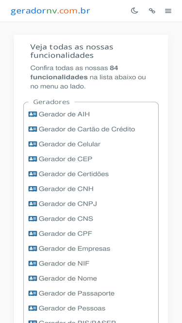 100%crie no gerador nv quantos números válidos quiser de forma simples e rápida para testar seus softwares em desenvolvimento.
