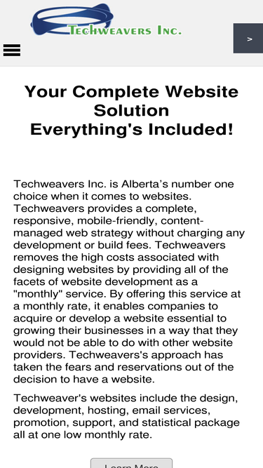 100%techweavers inc. located in western canada is your source for all inclusive web site services, web design, graphics and hosting services. without hidden costs. (websites you can manage!)