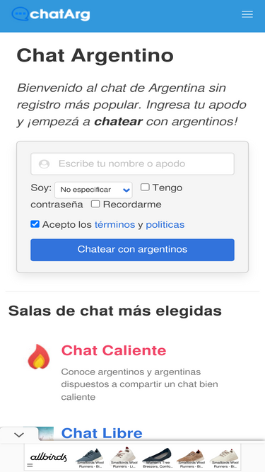 66%Ingresa al chat sin registro argentino y empieza a conocer gente de Argentina. Disfruta online en el chat de Argentina más popular.