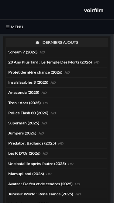 92%Voici la section elite de voirfilm, des milliers de films classés par note des membres. Vous avez la possibilité de noter chaque film afin d'aider les autres membres à choisir l prochaine sortie cinéma. Les dernières sorties cinéma sont classées <meta name=