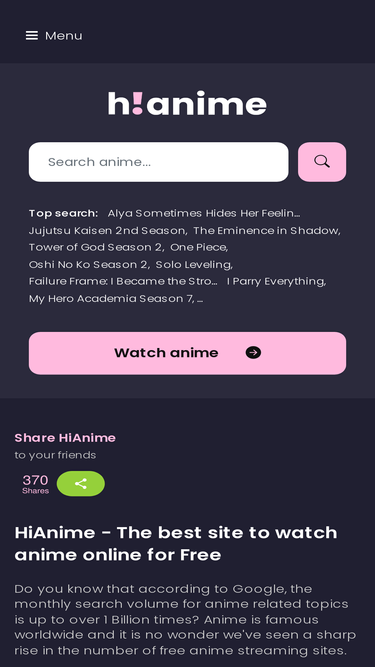 100%HiAnime is a Free anime website which you can watch English Subbed and Dubbed Anime online without account and daily update. WATCH NOW!