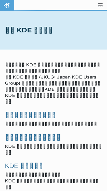 93%このサイトは KDE の日本地域・日本語関連のコミュニティに参加されたい方のためのサイトです。 日本 KDE ユーザ会 (JKUG: Japan KDE Users' Group) では、日本語のフォーラム・チャットなどオンラインコミュニティの運営の他、KDE 製品の翻訳や日本における KDE のプロモーションなど、日本語関連の貢献を行っています。