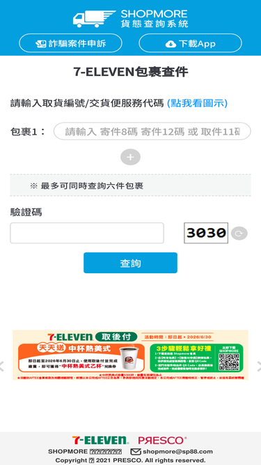 85%shopmore 包裹貨態查詢系統:提供消費者7-11查件服務,可線上快速查詢7-eleven超商取貨等完整包裹貨態,隨時掌握寄件取件配送狀況