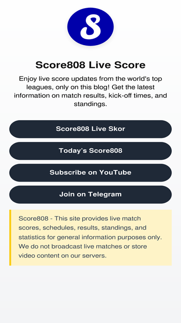 100%offical and authentic score808 live streaming media provides the most comprehensive and smooth live streams of football and basketball matches, including the english premier league, bundesliga, la liga, ligue 1, serie a, uefa champions league, tennis, badminton and more. evolving from score808.com, score808.vip, score808.pro,score808.world, score 808 and now continuing its service with score808.tv to meet people's needs.