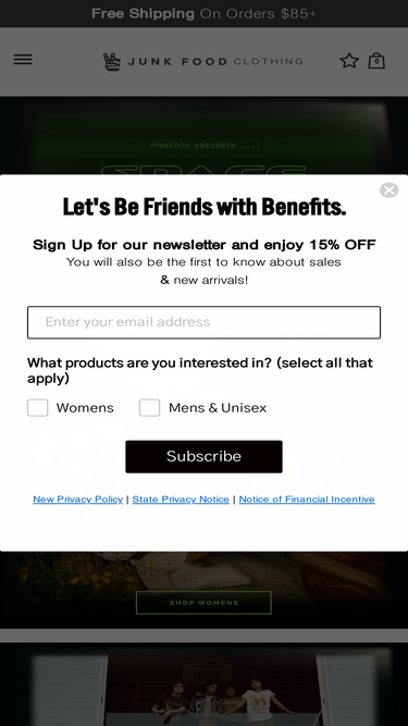 89%Junkfood Clothing LLC Terms of Use for http://junkfoodclothing.com/ Welcome to the Junkfood Clothing LLC ("JUNKFOOD” or “we” or “us”) website located at http://junkfoodclothing.com/ and other affiliated websites (the "Website"). Please review the following terms and conditions concerning your use of and access to