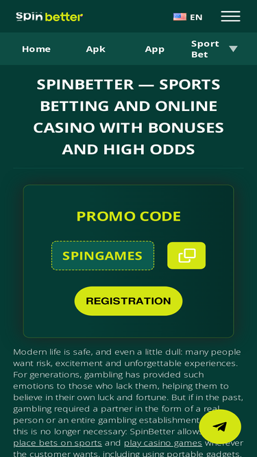 Spin better Casino ja urheiluvedonlyönti on yksi suosituimmista ja suurimmista uhkapelialustoista ⚡ Opi miten rekisteröityä Spin Betteriin, virallisen verkkosivuston tai peilin kautta.