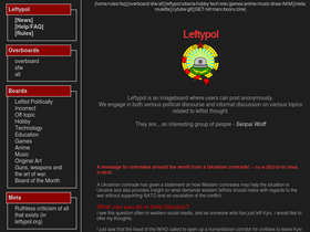 89%Leftypol is an anonymous imageboard about both serious political discourse and informal discussion on various topics related to leftist thought.