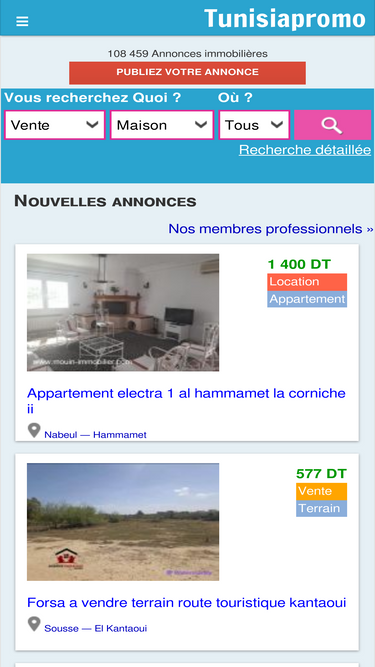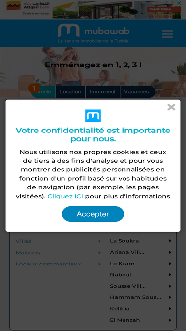 100%Mubawab est le site immobilier leader en Tunisie. Louez, achetez et vendez grâce à la plus large offre immobilière en Tunisie.
