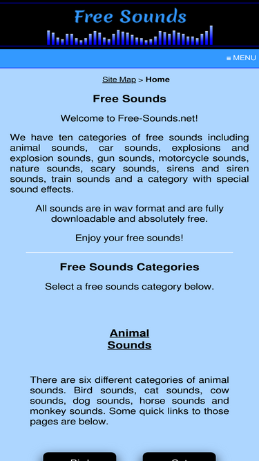 82%free sounds including animal sounds, car sounds, explosion sounds, gun sounds, motorcycle sounds, nature sounds, scary sounds, sirens, train sounds and more.