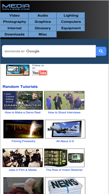 100%mediacollege.com is a free resource site, suitable for anyone with an interest in audio-visual media. tutorials and articles include everything from video production to website design.