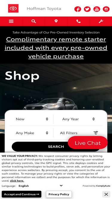 visit hoffman toyota to buy or lease a new toyota suv, truck, van or sedan. take a test-drive, finance a new toyota vehicle or schedule toyota service with us.