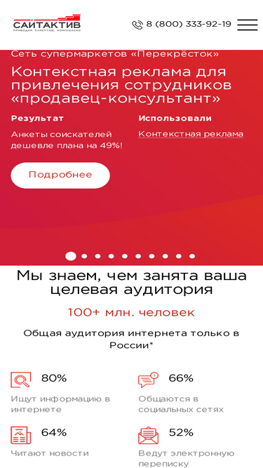 100%i-media: ✓ 1000 проектов ✓ 200 специалистов ✓ 18 лет опыта ✓ входим в топ-5 performance-агентств ✓ работаем на результат: тонкая настройка контекстных кампаний, сквозная аналитика, адаптивные стратегии продвижения ✓ даём гарантию на выполнение ваших kpi. звоните ☎ +7 (495) 797-55-99