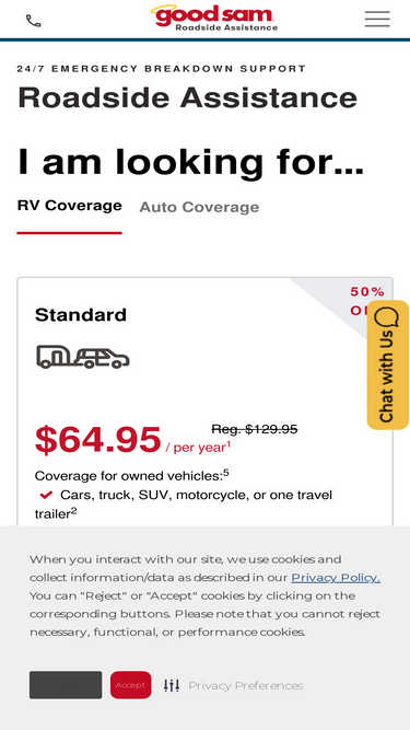 100%get the peace of mind that comes with good sam roadside assistance. auto and rv roadside assistance plans with premium coverage, towing, and roadside service.