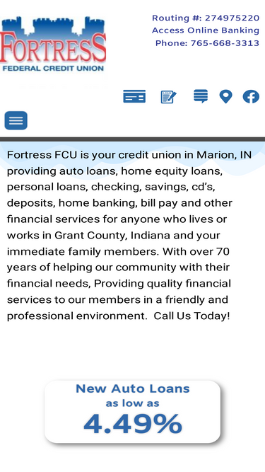 85%First County Federal Credit Union 1100 W. 11th St. Muncie, IN 47302 (765) 284-3471 fcfcu@firstcountyfcu.org First County Federal Credit Union Branch 1805 N. Elm St. Muncie, IN 47303 (765) 284-3471 fcfcu@firstcountyfcu.org Questions or Comments