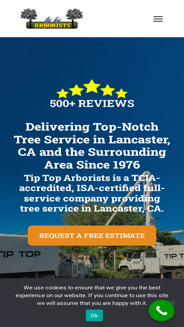 Fast, Safe & Reliable Tree Removal Services in Lancaster, CA When trees pose danger from storms or damage, or sometimes simply need removal for landscaping or construction, Tip Top Arborists delivers fast, licensed, insured tree removal across Lancaster. Licensed & insured tree service professionals 24/7 tree removal response Immediate action for hazardous tree situations Free estimates and rapid dispatch 4.9 Top Rated Tree Service verified by Trustindex Request a quote (661) 942-5501 Request A Quote Fast, Safe & Reliable Tree Removal Services in Lancaster, CA When trees pose danger from storms or damage, or sometimes simply need removal for landscaping or construction, Tip Top Arborists delivers fast, licensed, insured tree removal across Lancaster. Licensed & insured tree service professionals Immediate action for hazardous tree situations Free estimates and rapid dispatch 4.9 Top Rated Tree Service verified by Trustindex Request a quote (661) 942-5501 Request A Quote Tip-Top Arborists Provides Tree Removal Services in Lancaster, CA Tree situations require immediate professional attention to protect people and property. At Tip Top Arborists, our tree removal services are designed to respond quickly and safely when unexpected tree hazards arise. Our experienced team assesses risk levels, surrounding conditions, and structural threats before taking action. We understand that situations are unpredictable, which is why our response is focused on safety, efficiency, and minimizing further damage. Common Reasons for Tree Removal Storm-Damaged Trees Severe weather can weaken trees, causing sudden breakage, instability, and immediate safety risks to surrounding structures and people. Fallen Trees Trees that have fallen onto homes, driveways, or walkways create urgent hazards that require immediate professional removal. Leaning or Uprooted Trees Sudden leaning or uprooting indicates compromised root systems and a high risk of complete failure. Split or Cracked Trunks Major