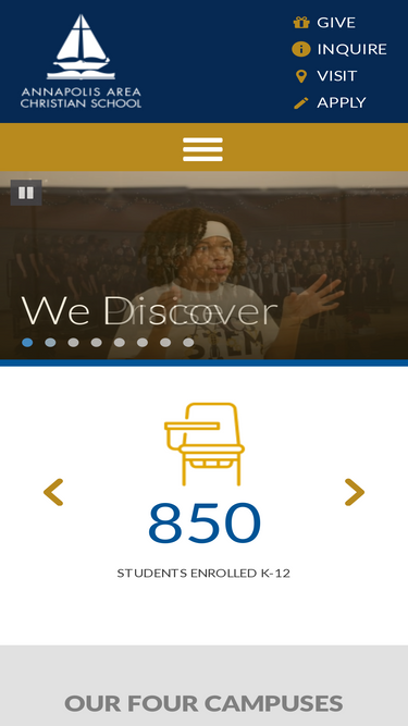 83%Annapolis Area Christian School offers arts programs in choral and instrumental music, theatre, and visual arts to reflect the creative nature of God.