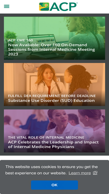 90%official site of the american college of physicians. acp provides advocacy, practice tools, clinical guidance, cme and moc for internal medicine and more.