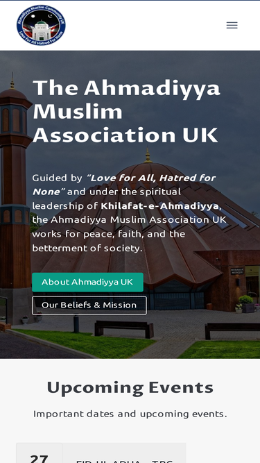 100%Guided by “Love for All, Hatred for None” and under the spiritual leadership of Khilafat-e-Ahmadiyya, the Ahmadiyya Muslim Association UK works for peace,