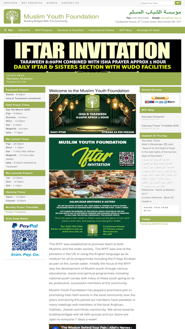 42%the muslim youth foundation has prayer facilities for both brothers and sisters with approximately 1000 people attending jumah here from many different ethnic backgrounds, arab, pakistani, bengali, white, black british, african, malaysian etc. the people who attend the myf include students, professionals and others working in the city centre.