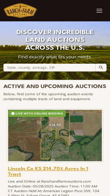 92%Discover prime ranch and farm properties at our online auctions. Browse listings, bid on land, and invest in real estate with confidence.