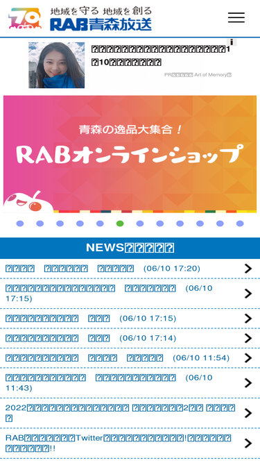 72%青森県のTBS系列局。テレビ番組案内、青森県内ニュース、お得情報、アナウンサーブログなどを掲載中。