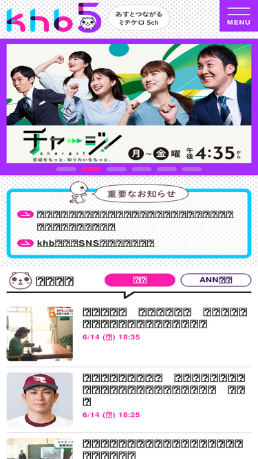 71%khb東日本放送公式ホームページです。宮城県のテレビ朝日系列局。番組の最新情報やニュース、イベントなど、khbに関する様々な情報をお届けします。