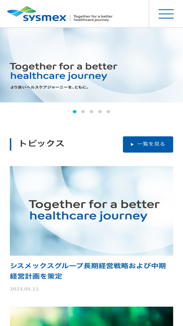 83%シスメックス株式会社は、「より良いヘルスケアジャーニーを、ともに。」を長期ビジョンに掲げ、臨床検査機器、試薬、ソフトウェアを世界中へお届けしています。