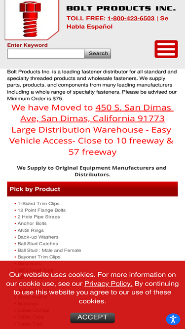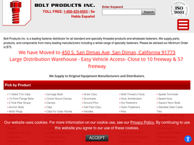 bolt products is a stocking distributor industrial standard and specialty fasteners for commercial applications for oems and distributors. call for a quote usa (800) 423-6503 or submit rfq online. bolt products staff assist with design and engineering for custom fastener applications. iso 9001, rohs, reach, compliant.