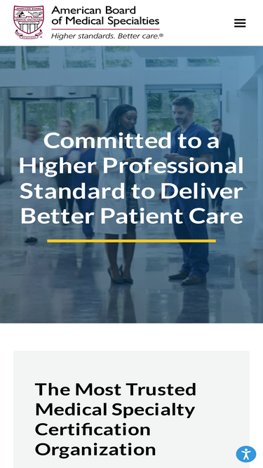 The mission of ABMS is to serve the public and the medical profession by improving the quality of health care through setting professional standards for lifelong certification in partnership with Member Boards.