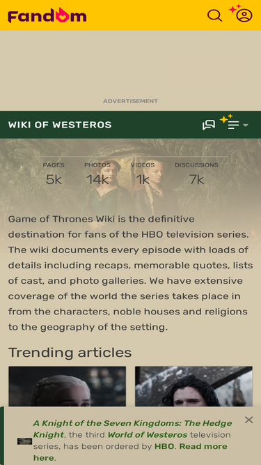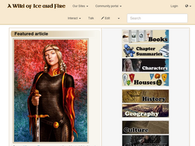 89%The Wiki of Ice and Fire is dedicated to the A Song of Ice and Fire and Game of Thrones series. It is a fan-curated community website.