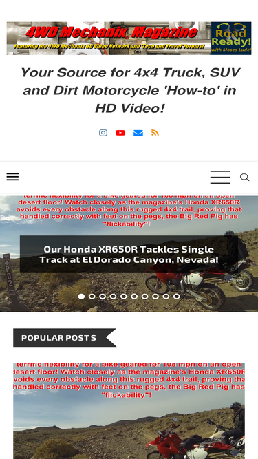 100%How-to videos and articles covering repairs, rebuilding and performance upgrades on 4x4 Jeep®, 4WD truck, SUV and dirt/dual-sport motorcycles. News on travel, off-road events, trade shows, community outings and racing coverage.