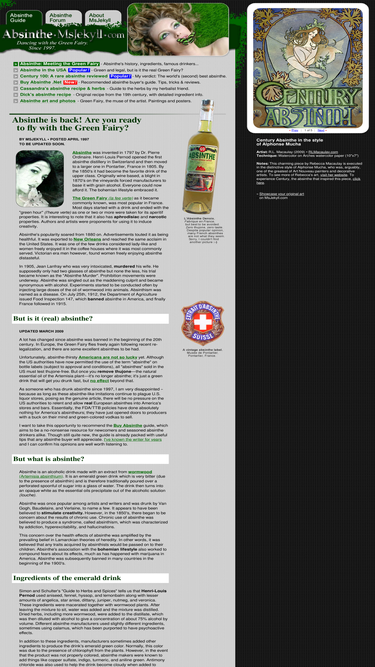 99%absinthe's controversial history and a breakdown of ingredients, with their own history, and medicinal properties. absinthe related art and links.