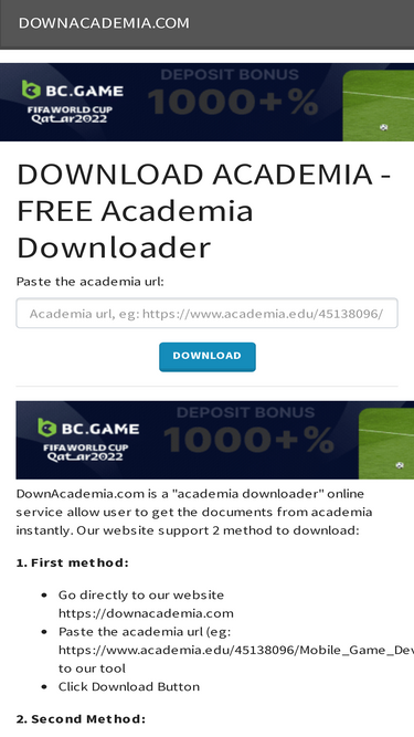 100%downacademia.com is a academia downloader online service allow user to get the documents from academia instantly.