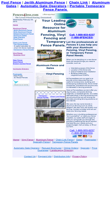 100%fences4less offers the lowest prices for all your aluminum fencing, temporary fencing, vinyl fencing, chainlink fencing and more! call us today for help!