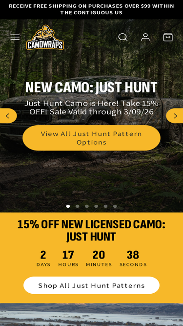 87%Discover premium camo car wraps, gun wraps, boat wraps, and more at Camowraps®. High-quality, durable designs that enhance your gear and style.
