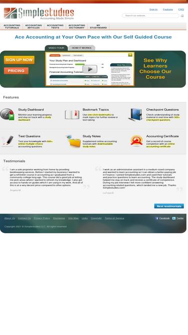 91%learn accounting online with simplestudies.com accounting course. we explain accounting principles in a simple way. our course includes accounting tutorials on introduction to accounting, accounting tests with detailed explanations, and accounting dictionary.