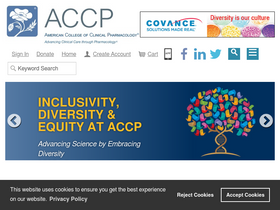 american college of clinical pharmacy (accp) - an international association of clinical pharmacists dedicated to optimizing drug therapy outcomes in patients by promoting excellence and innovation in clinical pharmacy practice, research, and education. accp information; membership application; scientific and educational meetings-- practice and research forum, annual meeting, pharmacotherapy board preparation course; home-study programs--pharmacotherapy self- assessment program, pharmacoeconomics and outcomes; scientific journal--pharmacotherapy; resecrch institute funded fellows and research awards; searchable member database; board certification; bookstore; employment opportunities; newsletter--accp report; press releases; officers, staff, committees; chapters; practice and research and research networks; position papers; online survey site links