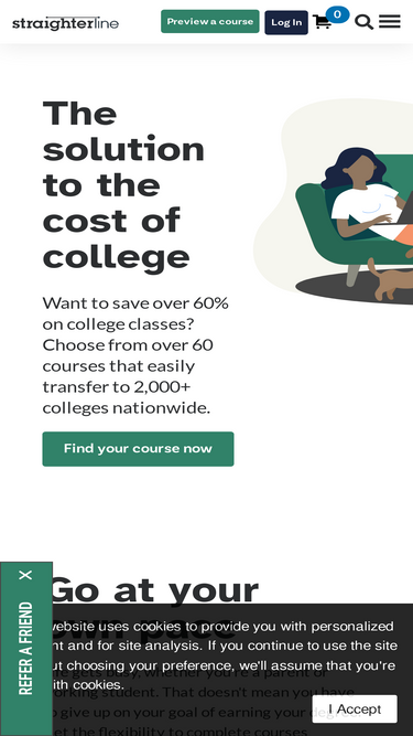 85%take straighterline low cost online courses for college credit. credits are easily transferable to our partner colleges. start a free trial today!